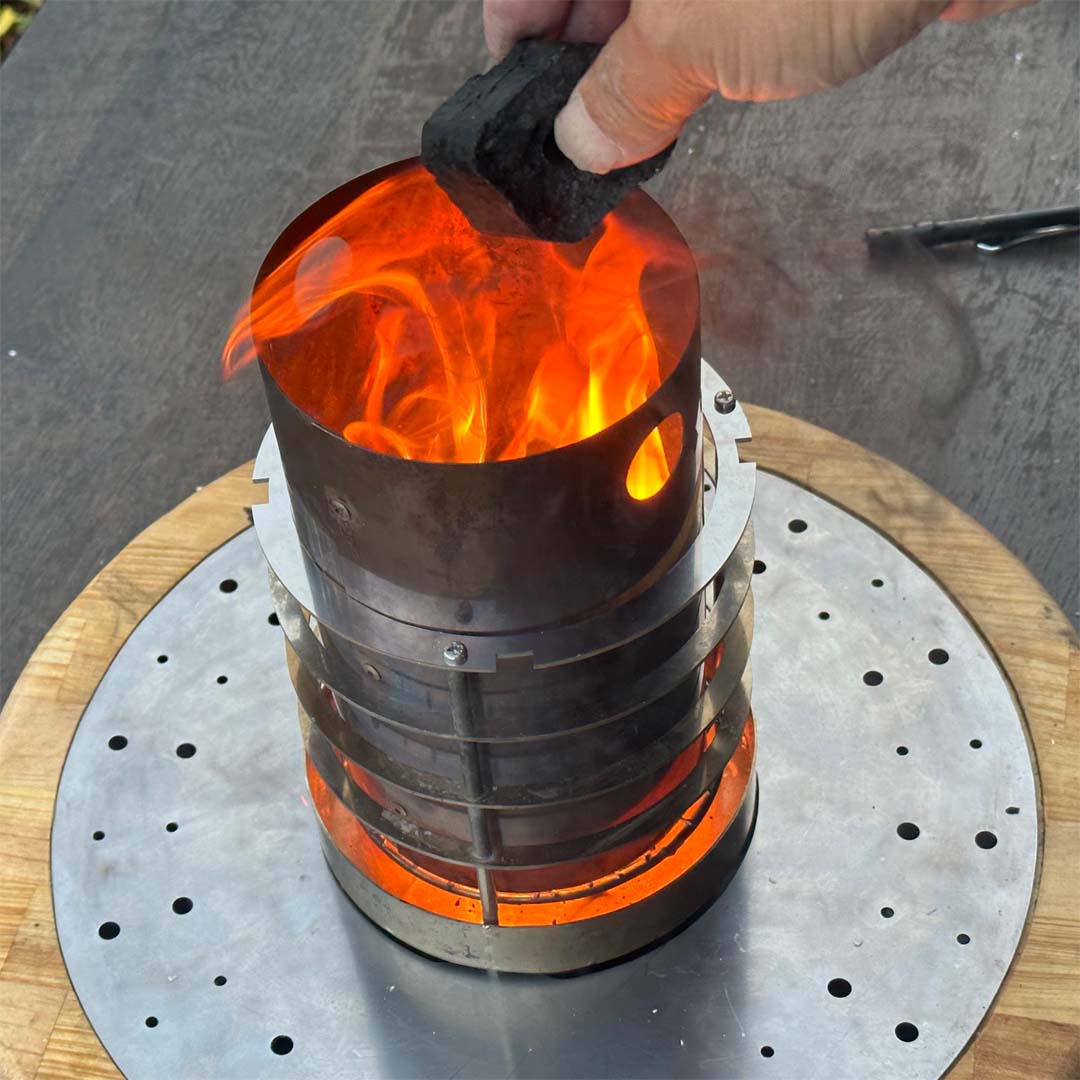 ですから、「呑休」の炭タワーにサイズを合わせた、専用の火起こし筒を用意することにいたしました。