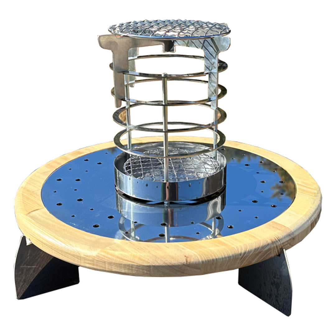 「タワー」と呼ぶだけあって、テーブルから突き出すように上方に突き出ており、炭を積んで燃やすことができるようになっています。
