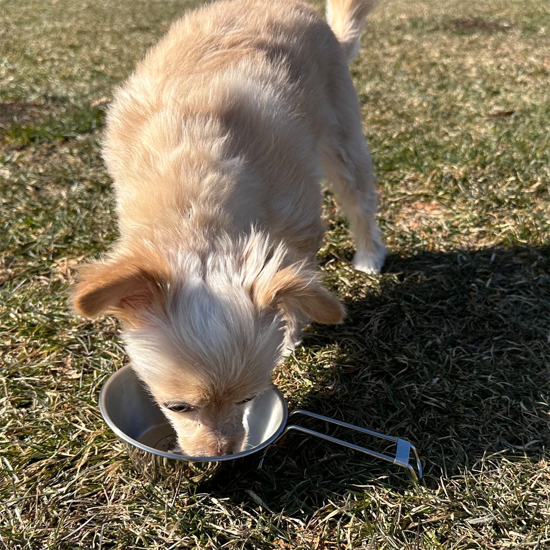 シェラカップは散歩中のワンコの水補給にぴったり。